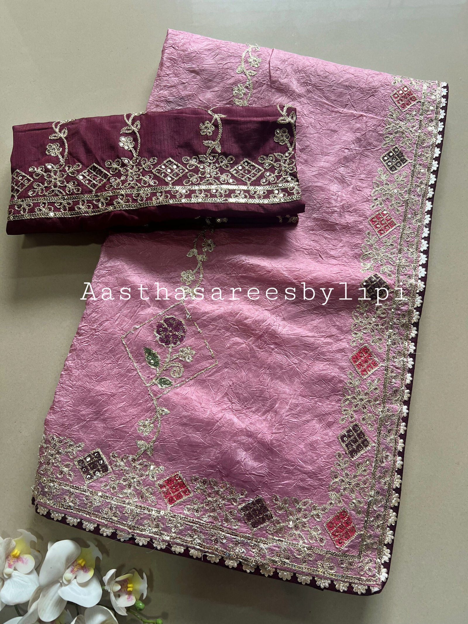 Crushed Shimmer Silk Saree