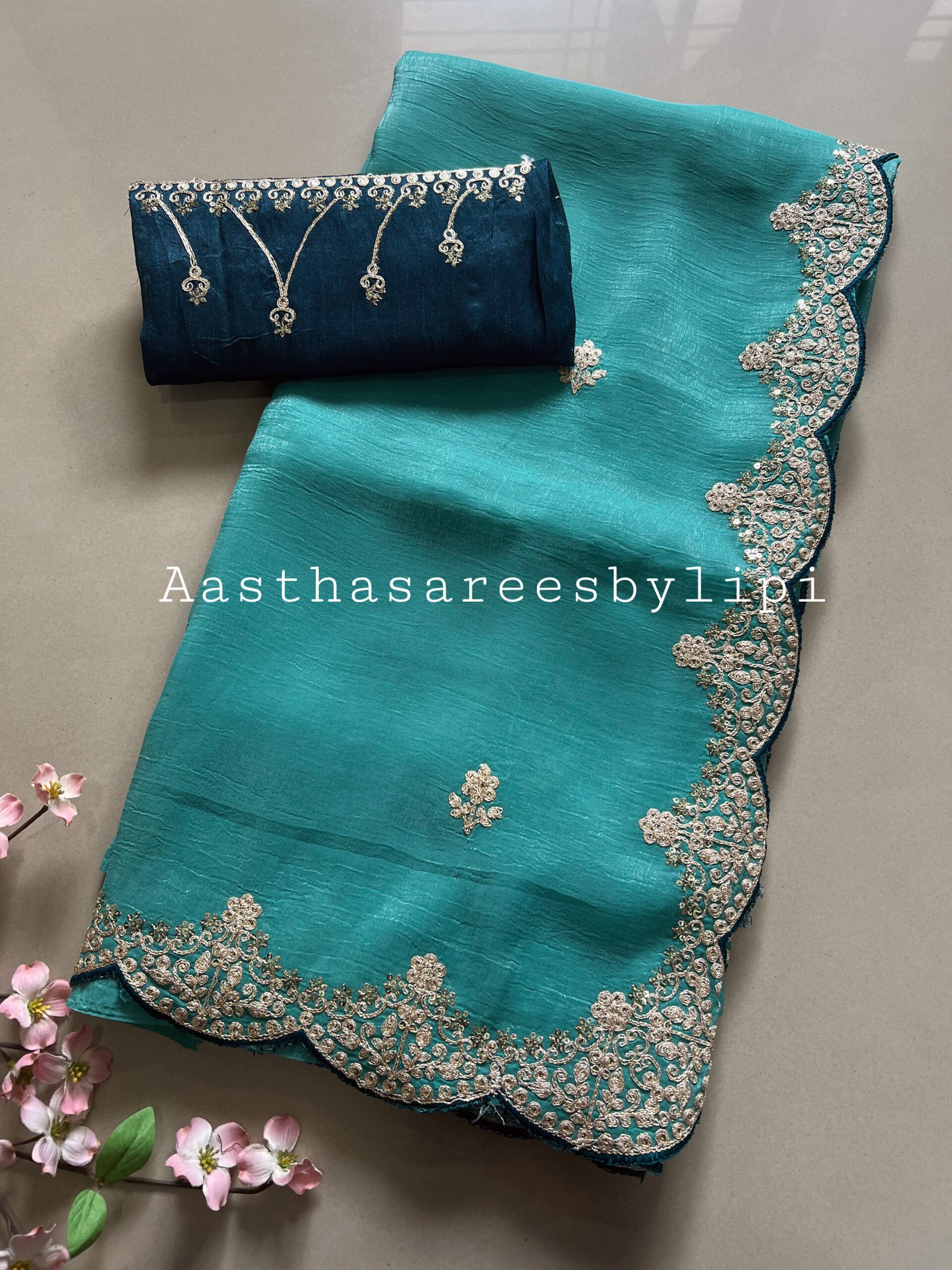 Cut Work Pitta Border Shimmer Chiffon Sarees