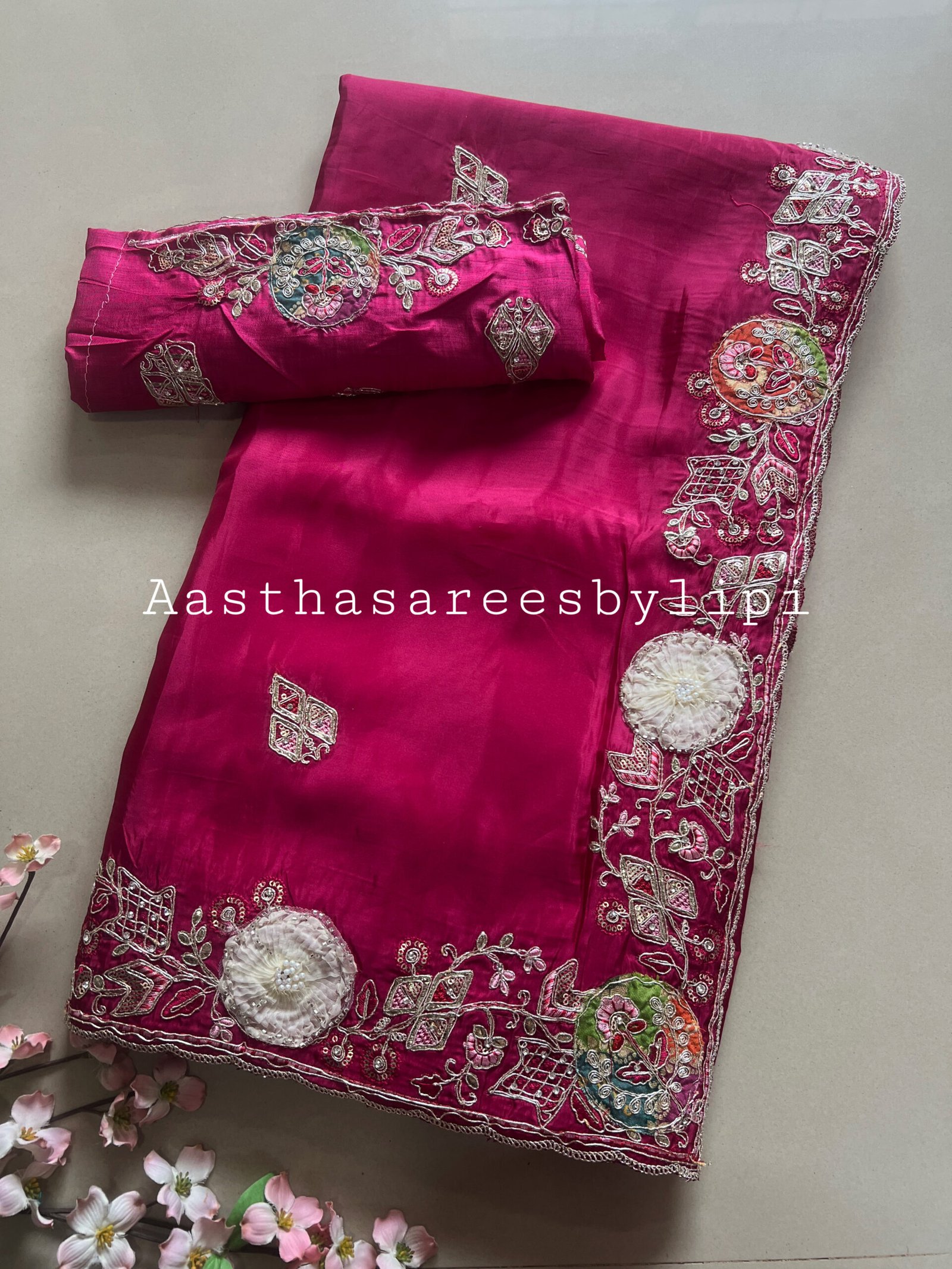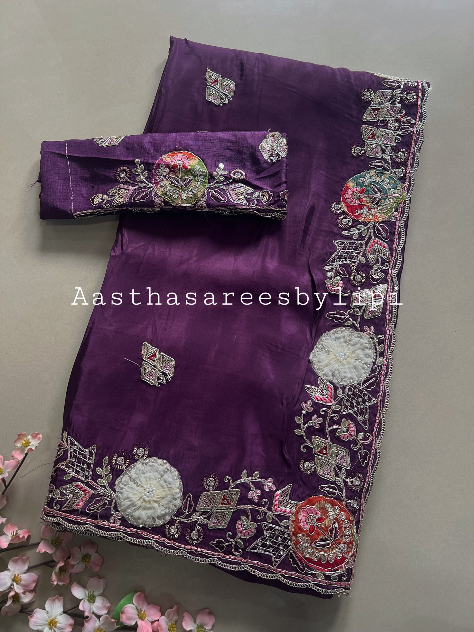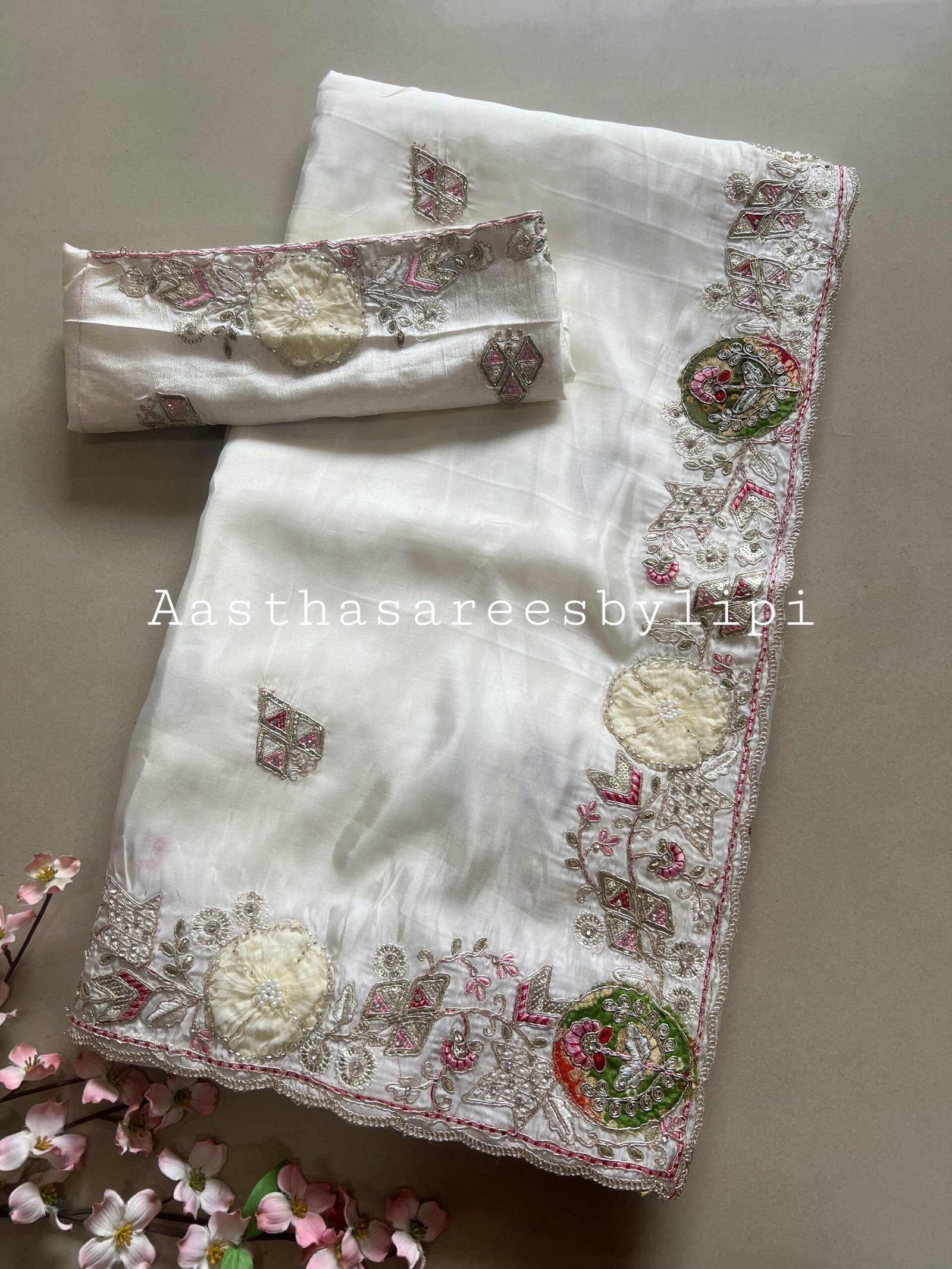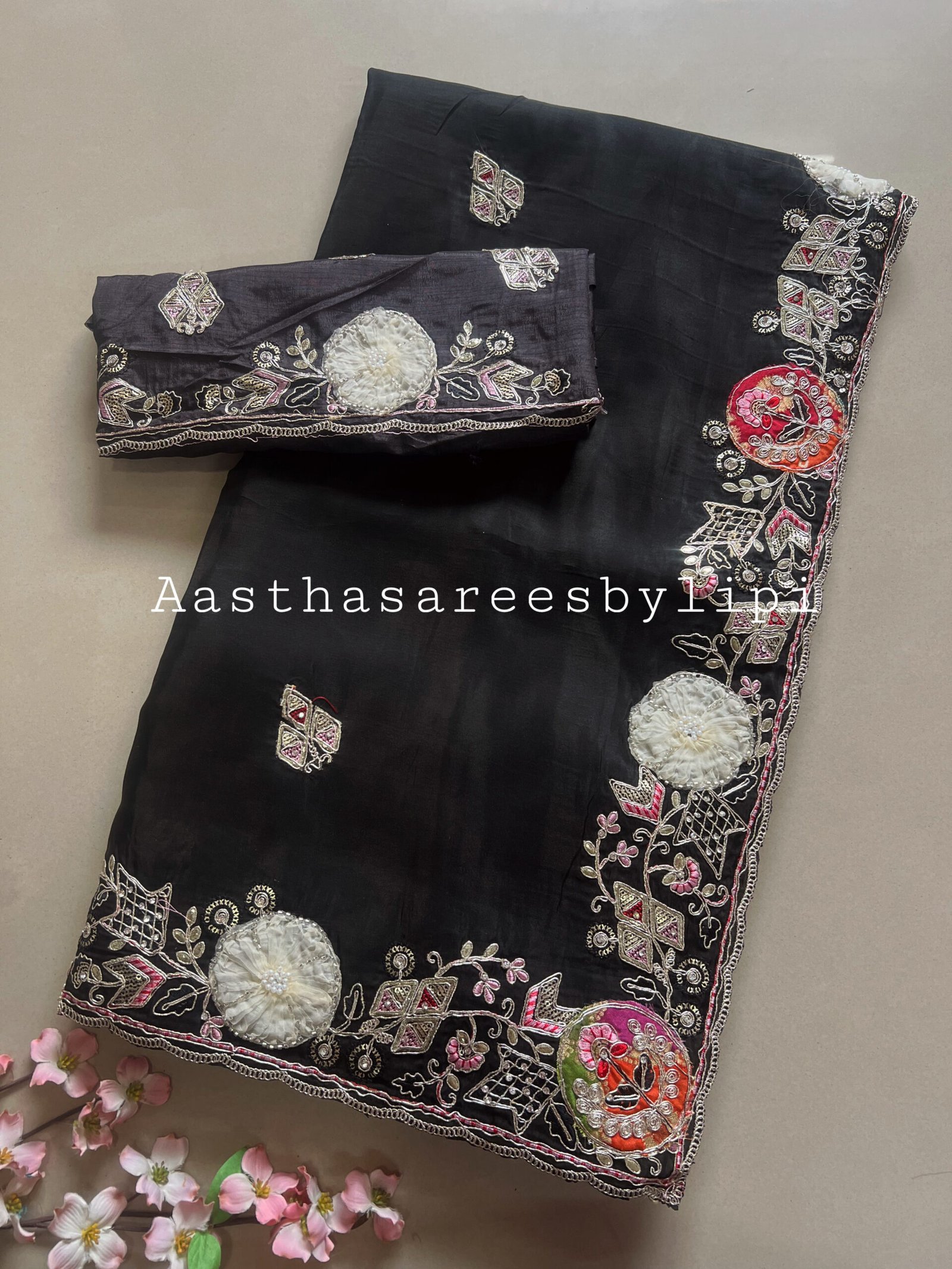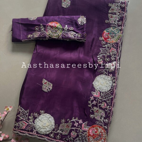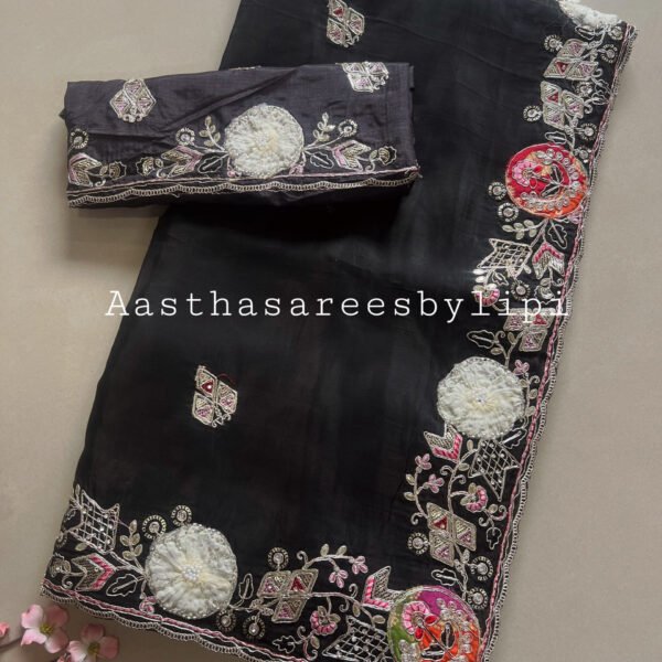 Thread embroidered border and butti