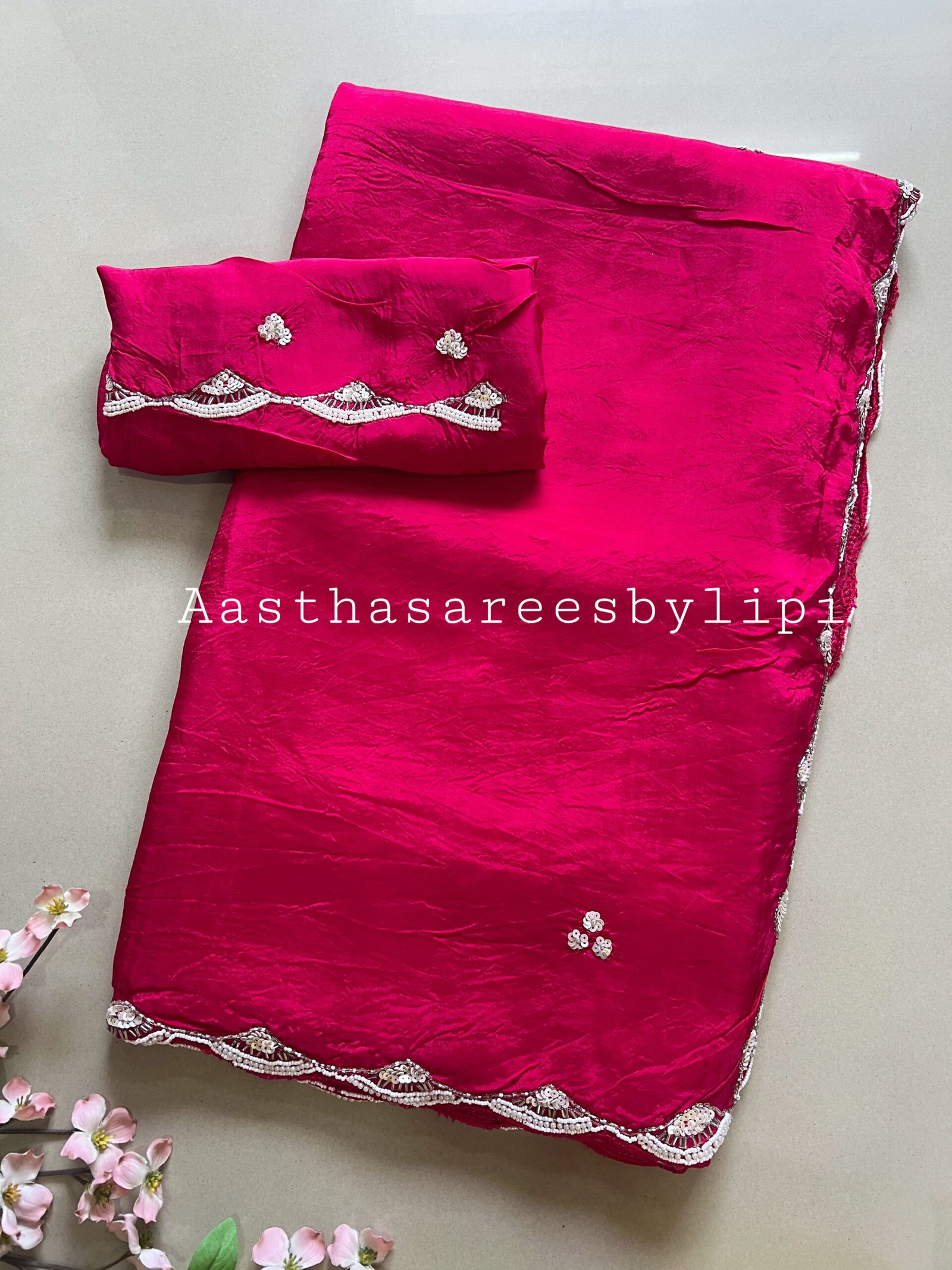 Details: Soft Upada silk fabric Soft flowy and shiny Pearl hand work border butti Same fabric heavy blouse