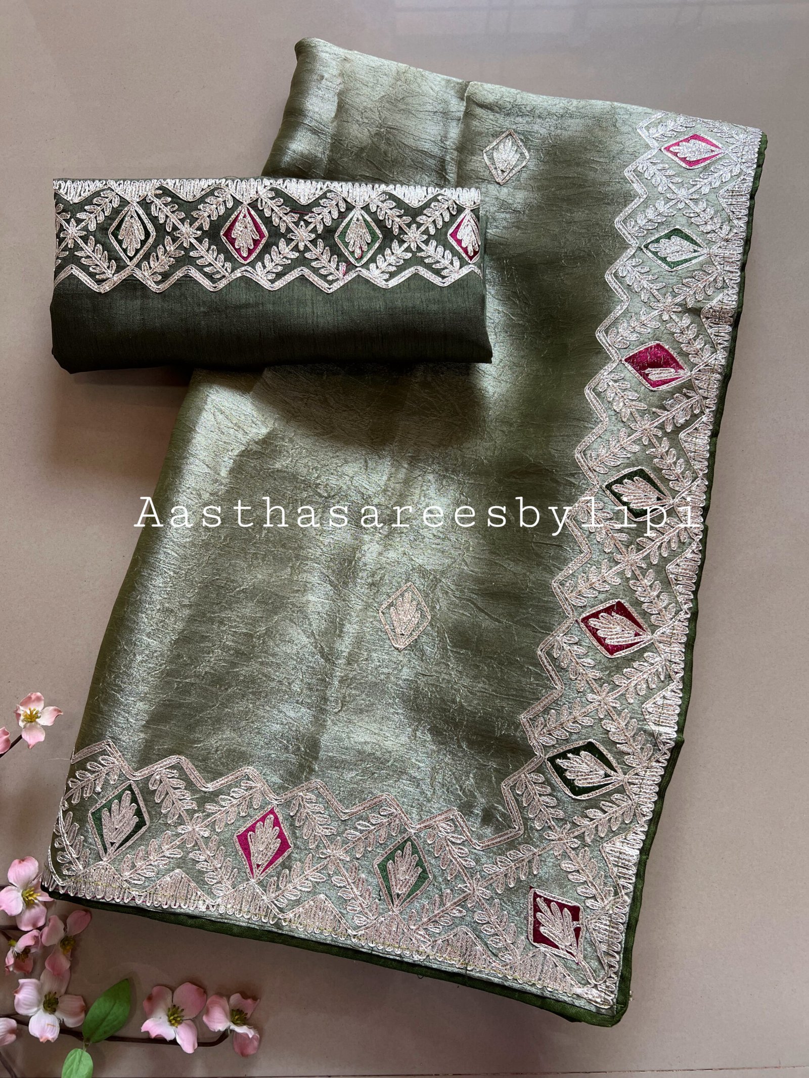 Pheta Work Crushed Shimmer Organza Sarees