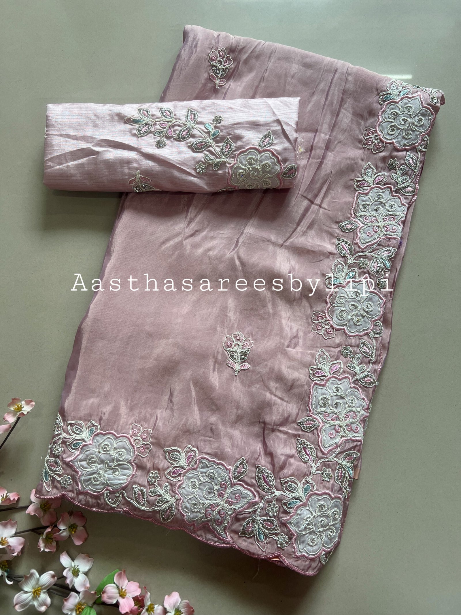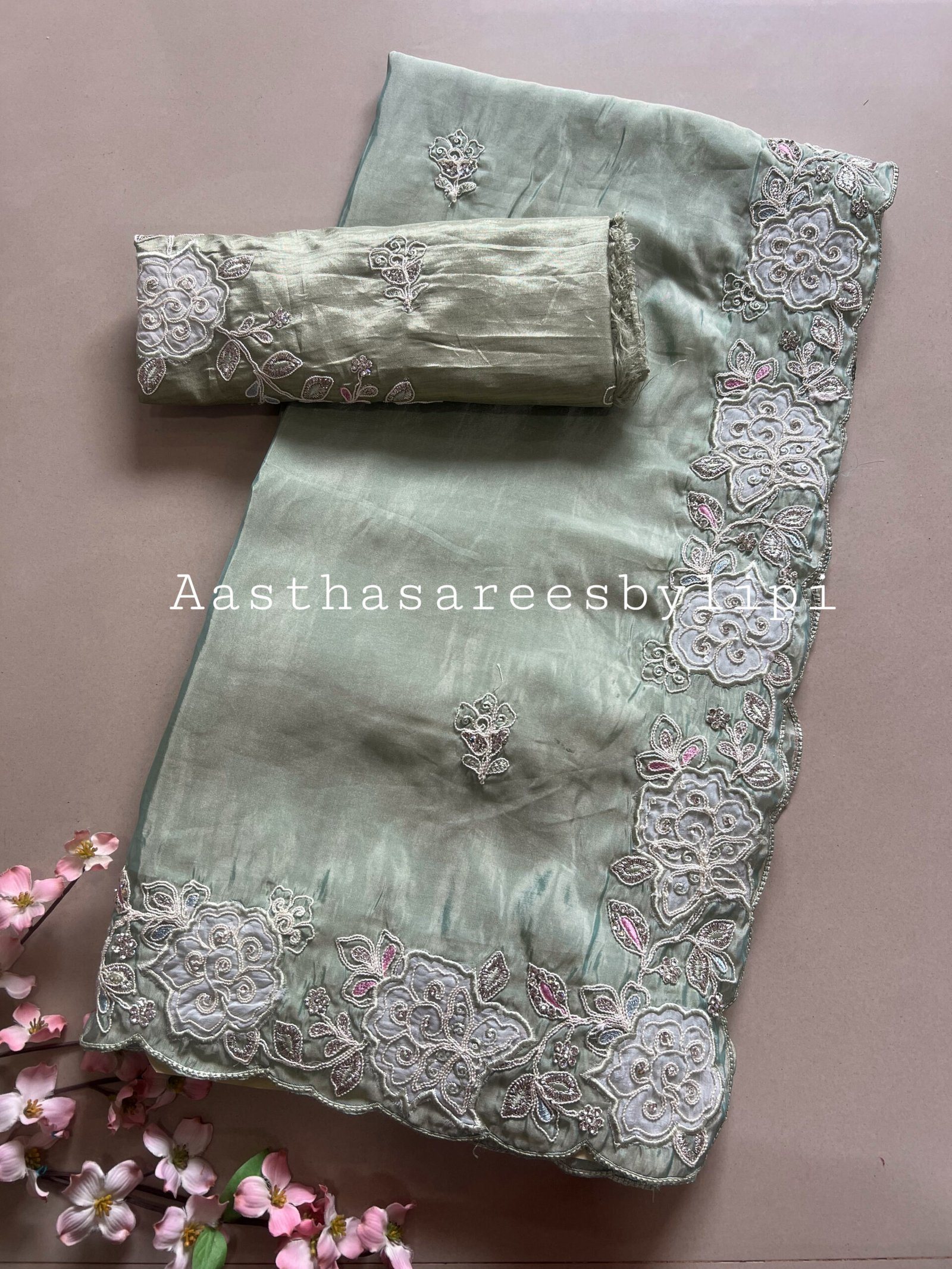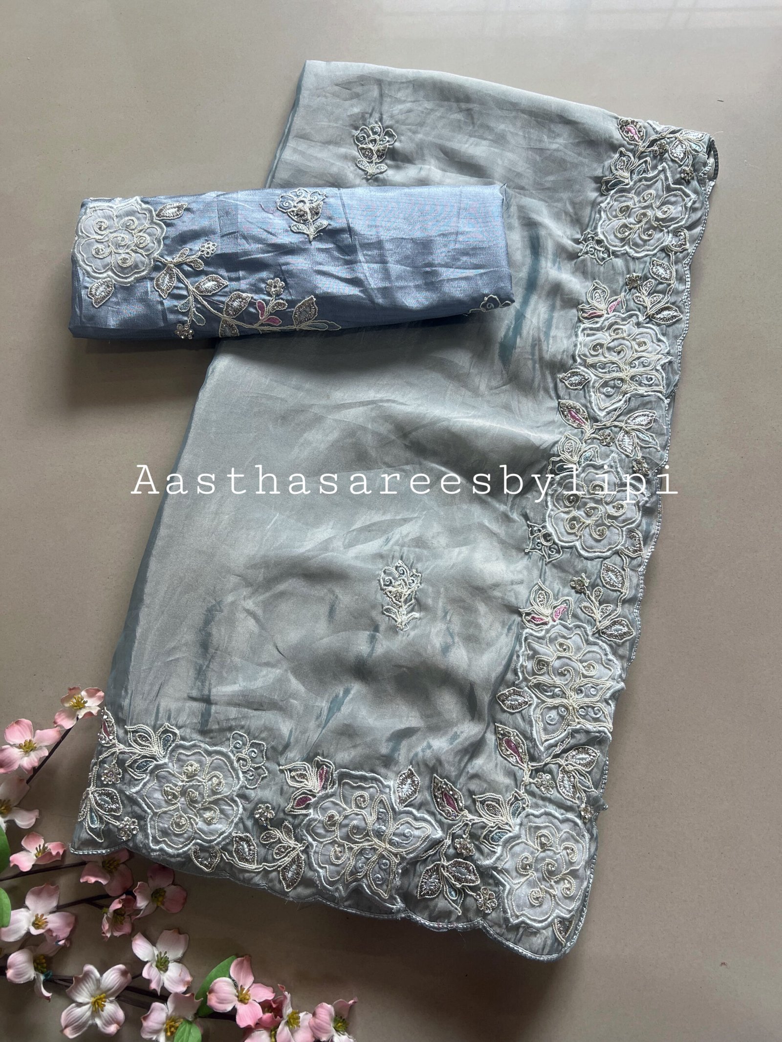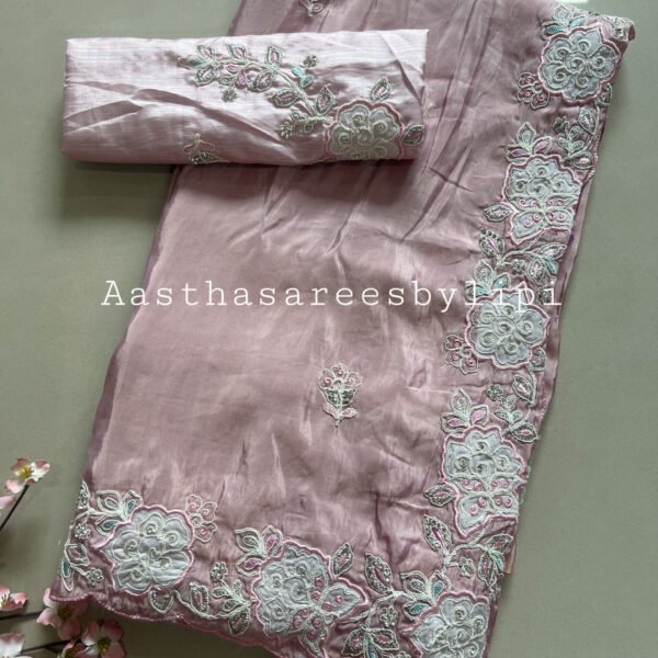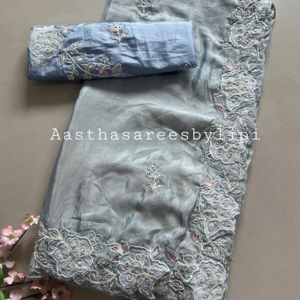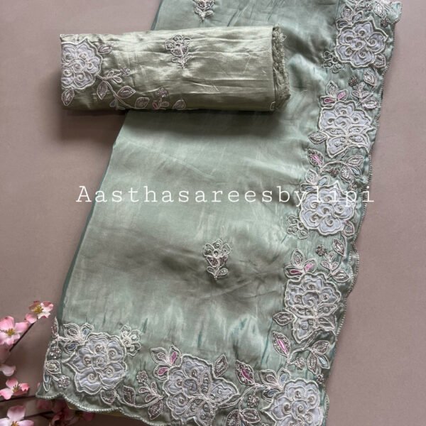 Details: Shimmer Soft silk fabric Soft flowy and shiny Thread embroidered border and butti Heavy Blouse soft silk fabric