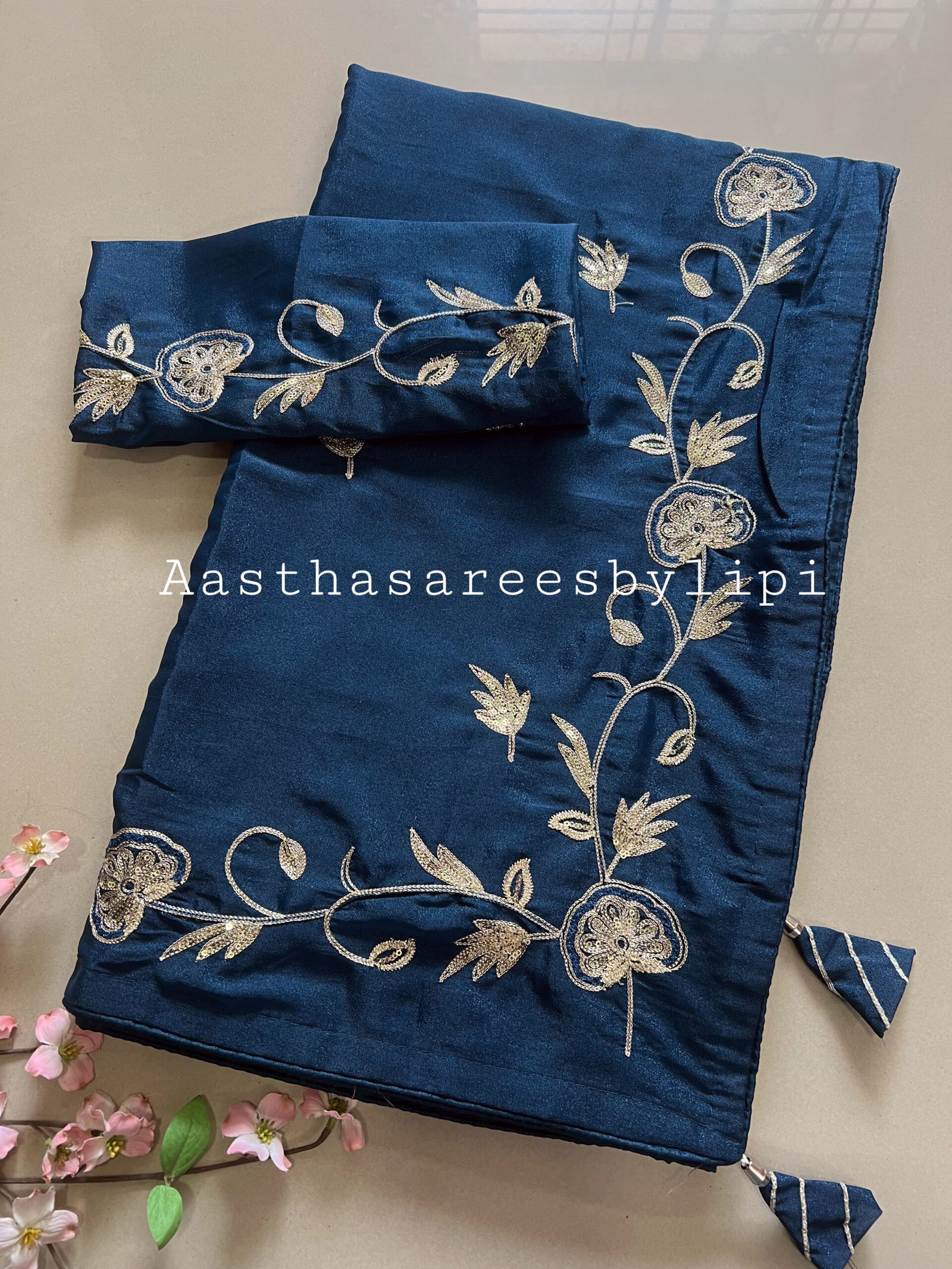 Shimmer soft fabric Thread embroidered work Small lace border attached Light work blouse
