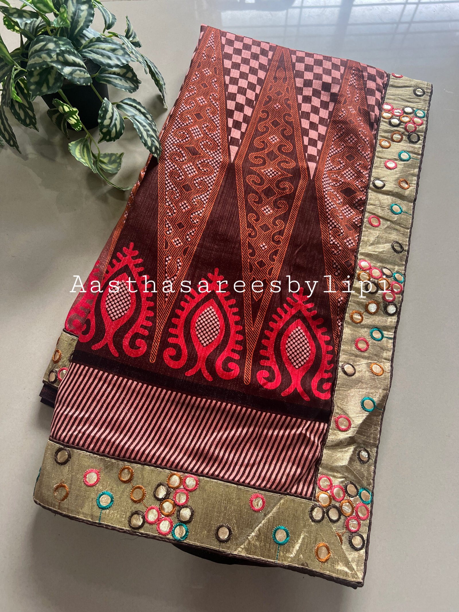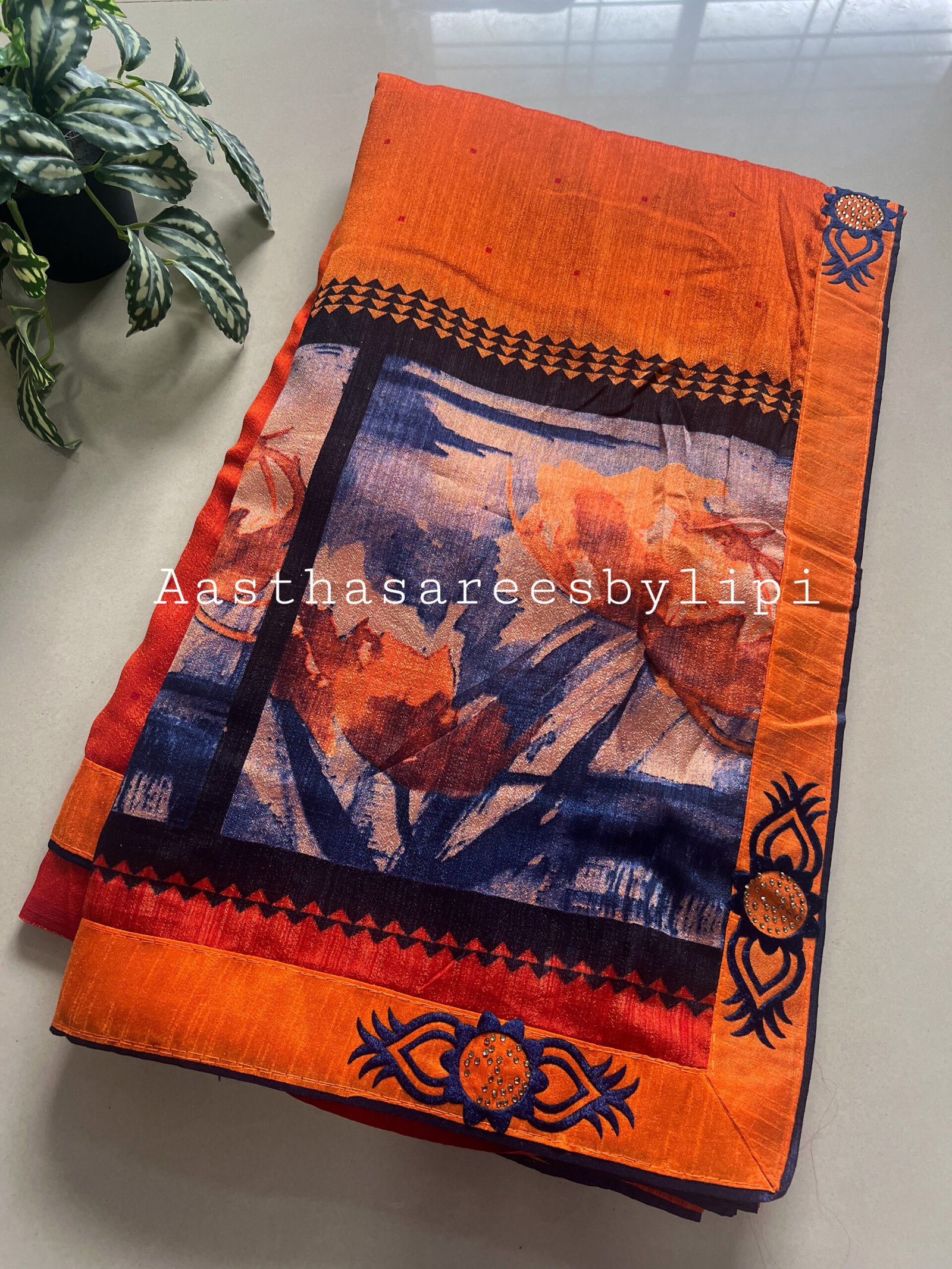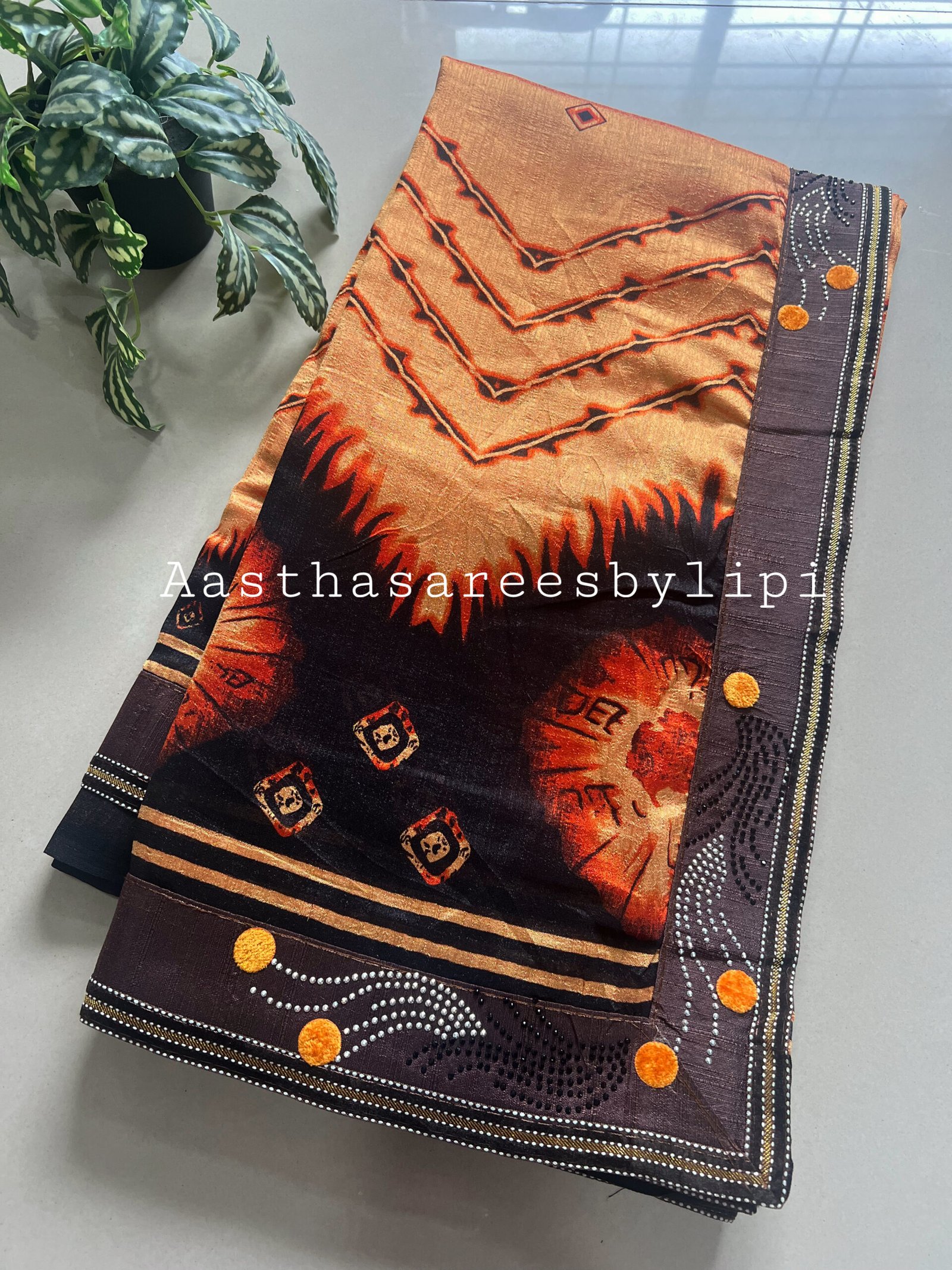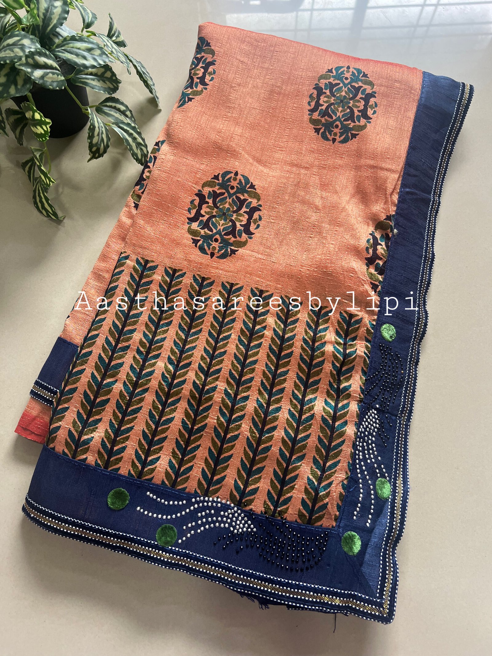 A few sarees with stone work border we don’t provide any guarantee for the stone work a few stones may come out