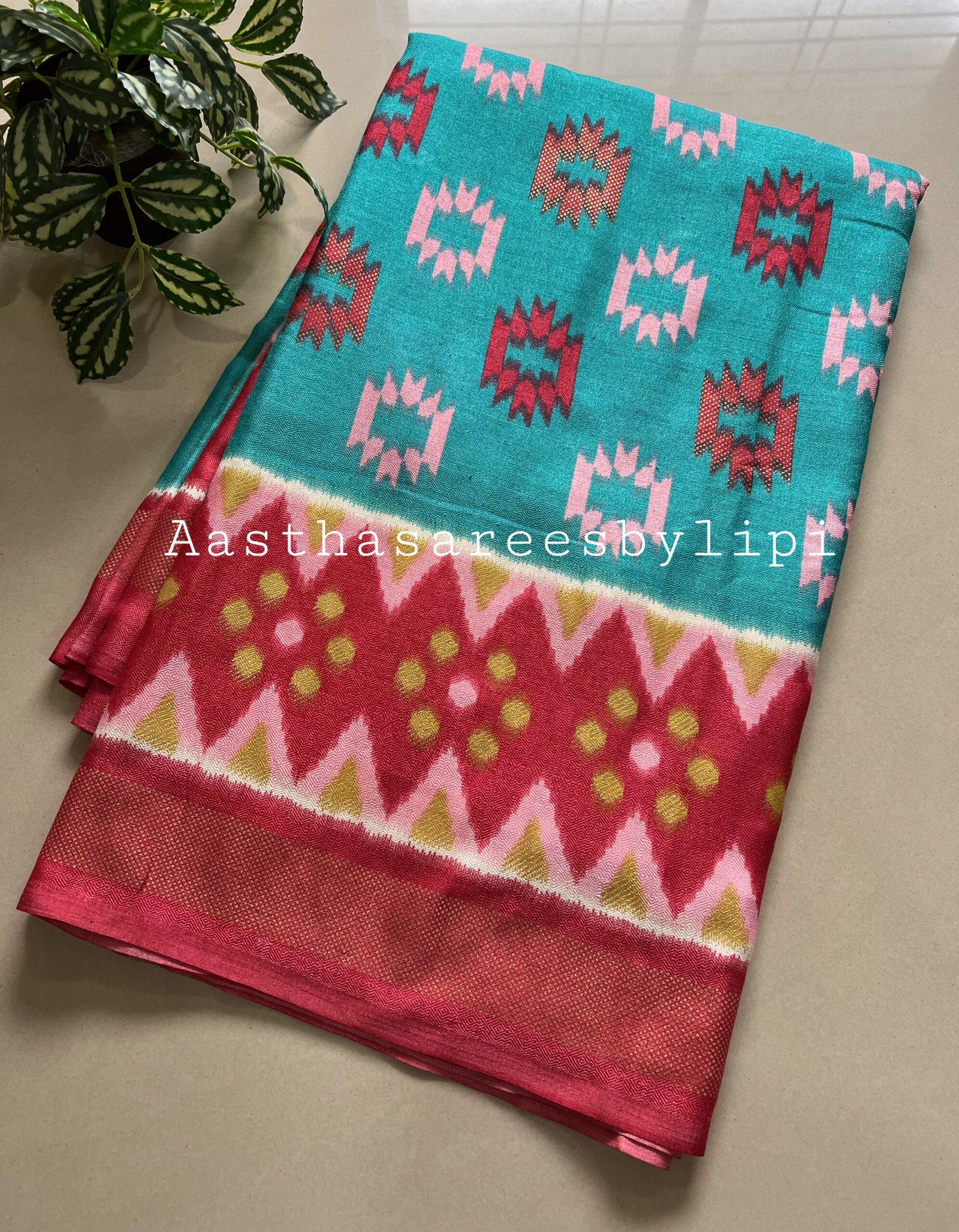 Printed pallu border and blouse