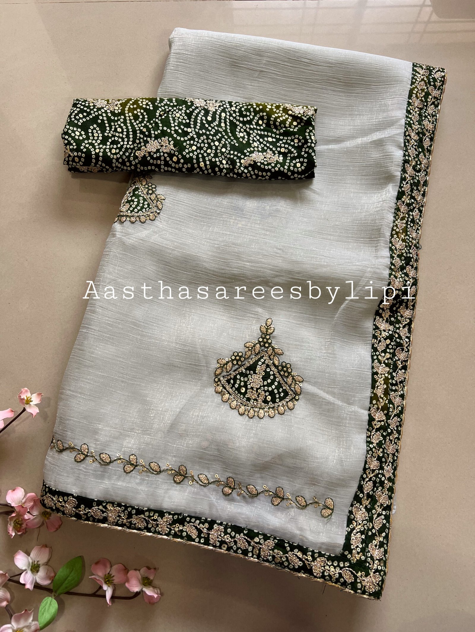 Bandhej Blouse Chiffon Patch Work Saree